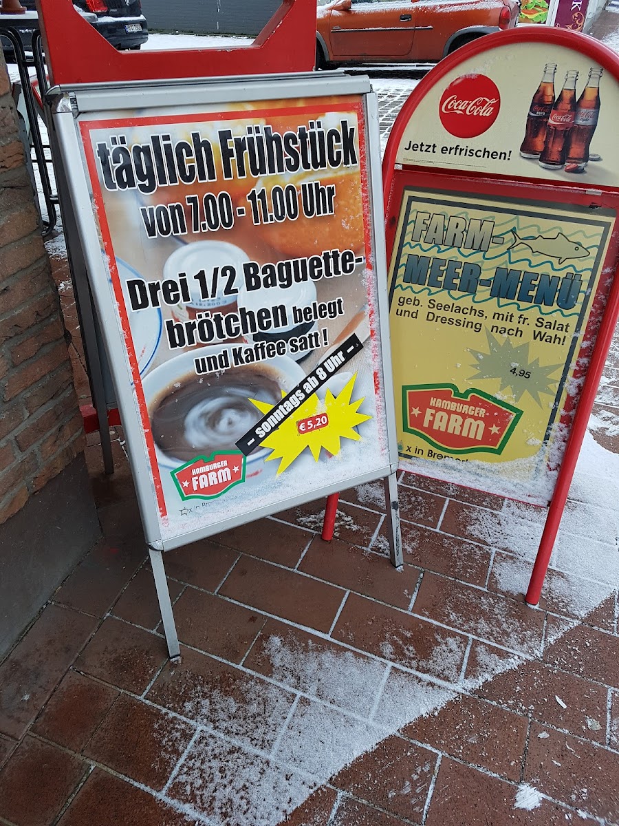Welcome to Hamburger Farm Pizza Farm, a delightful fast food gem nestled at Hafenstraße 129, Bremerhaven. This vibrant eatery is renowned for its inviting atmosphere and dedicated staff, creating a welcoming haven for burger enthusiasts and families alike. The menu takes center stage with an assortment of flavors, featuring the popular Kids Farmburger meals, ensuring little ones enjoy tasty bites alongside a special gift.